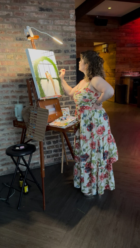 This gorgeous summer wedding found me back at Morgan’s on Fulton for the second time this year! It was such a blast getting to paint a new piece with a completely different vibe at the same place as a wedding just over a month before. It was such a great demonstration of how versatile so many Chicago venues are!
